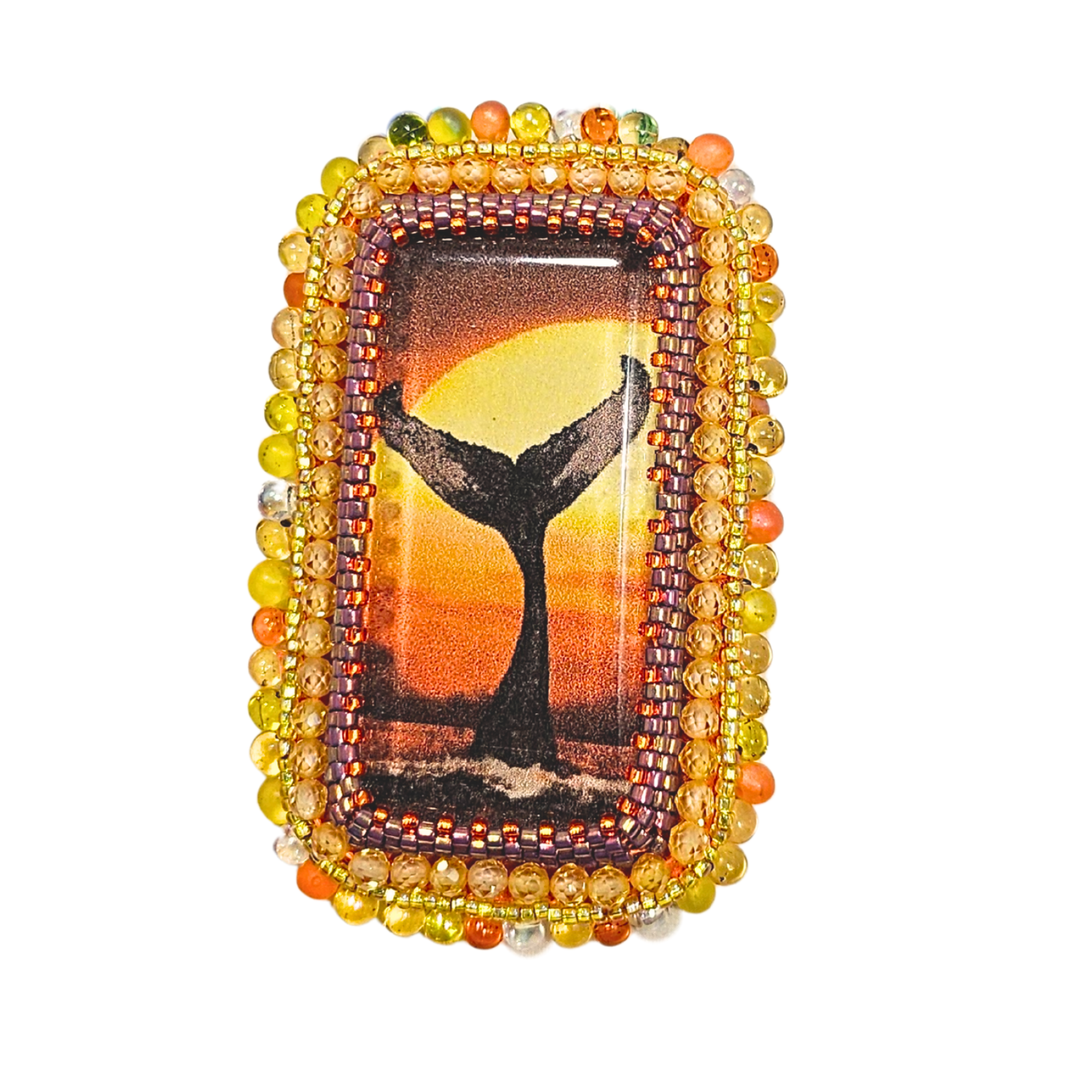 Handcrafted by artist Lynn Hahn, this multifunctional creation makes a beautiful ornament or pendant, and even has a pin to be worn as a broach.