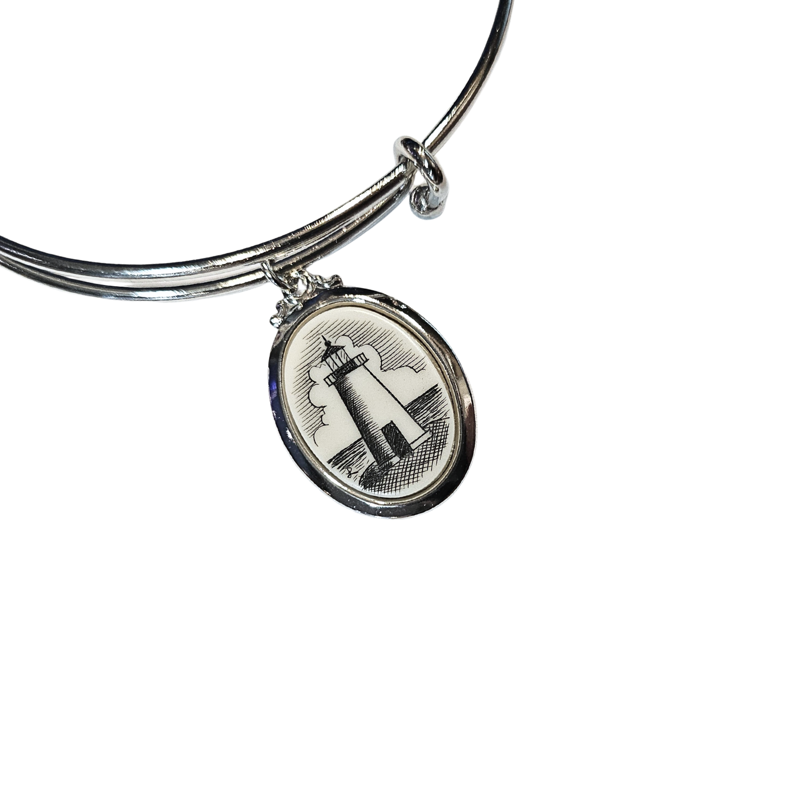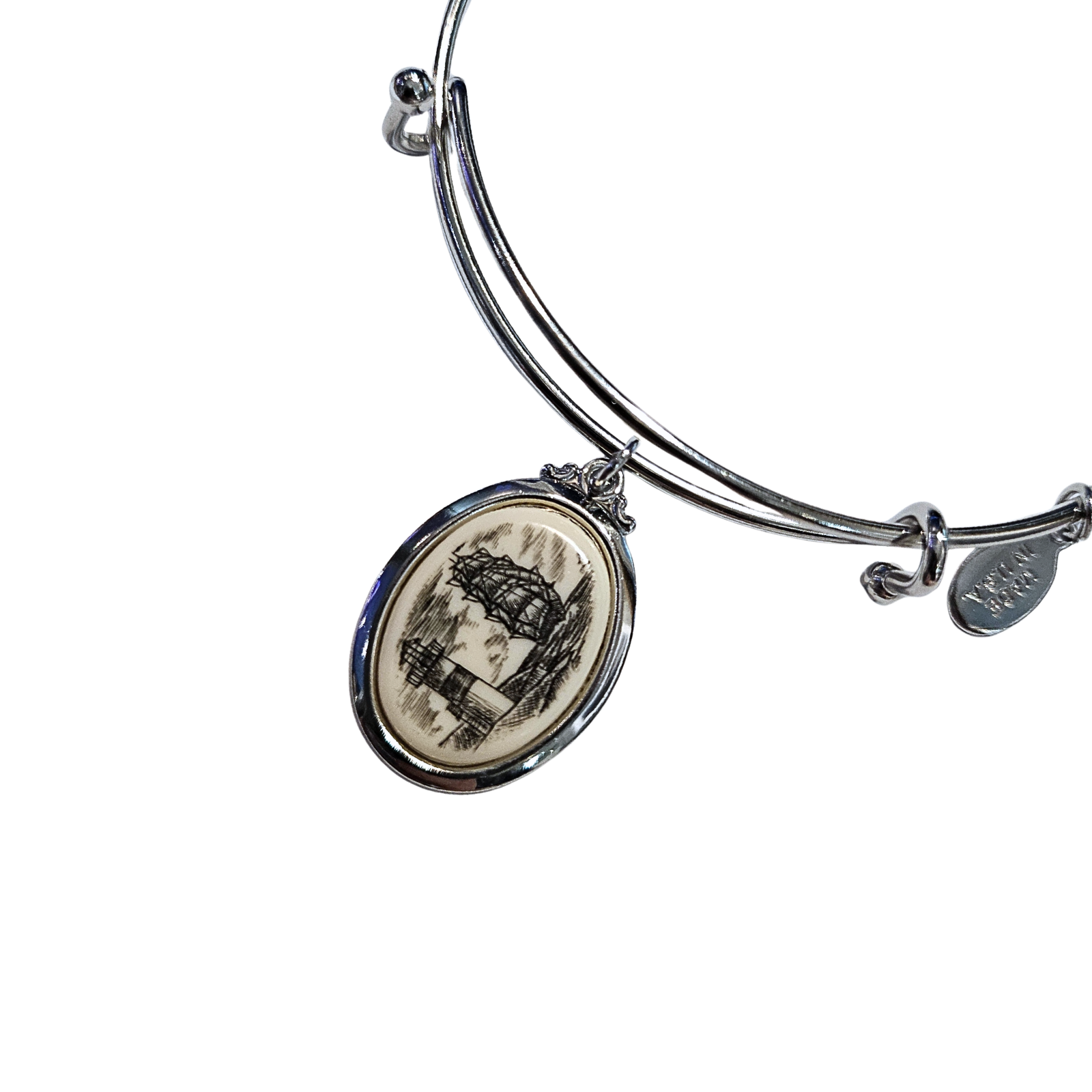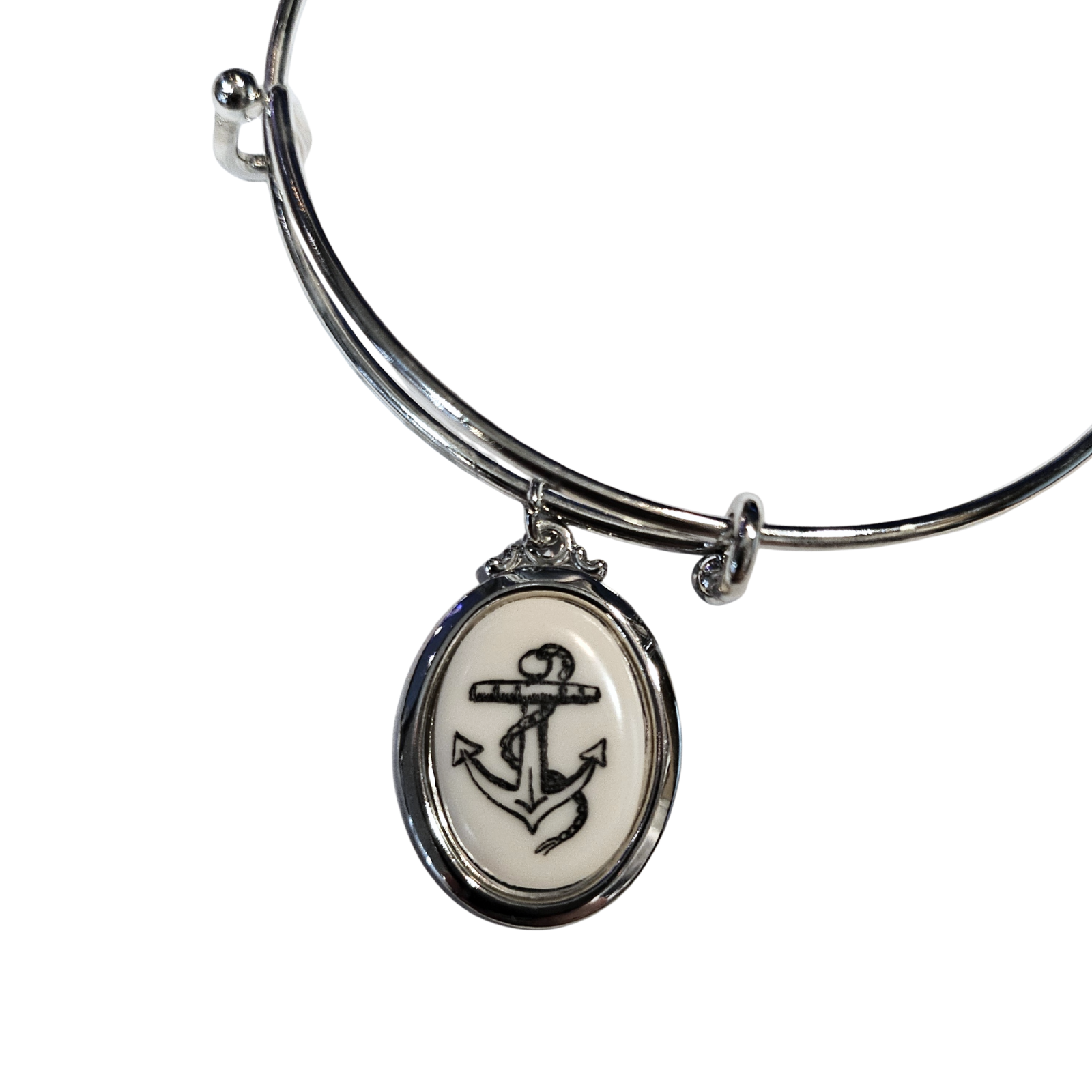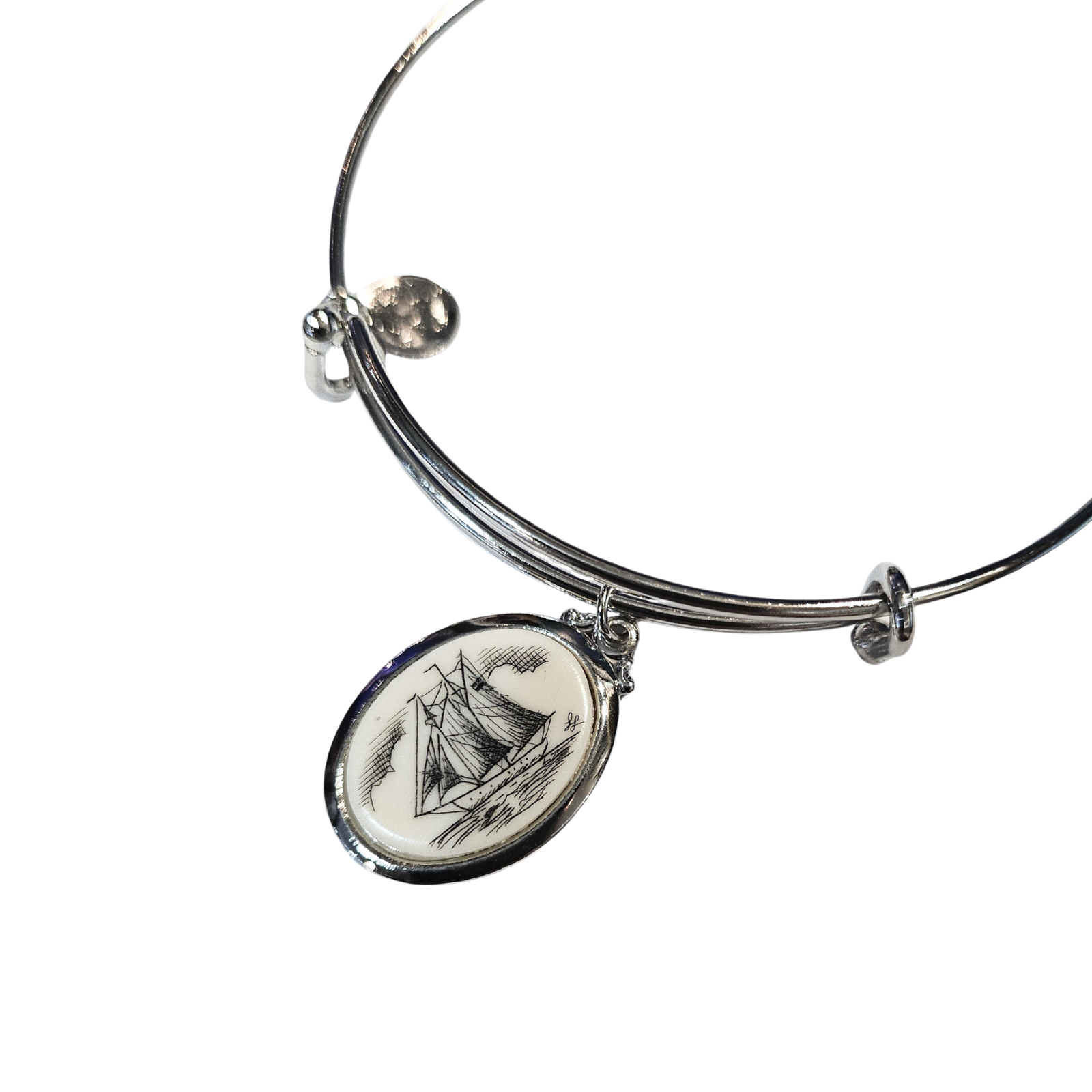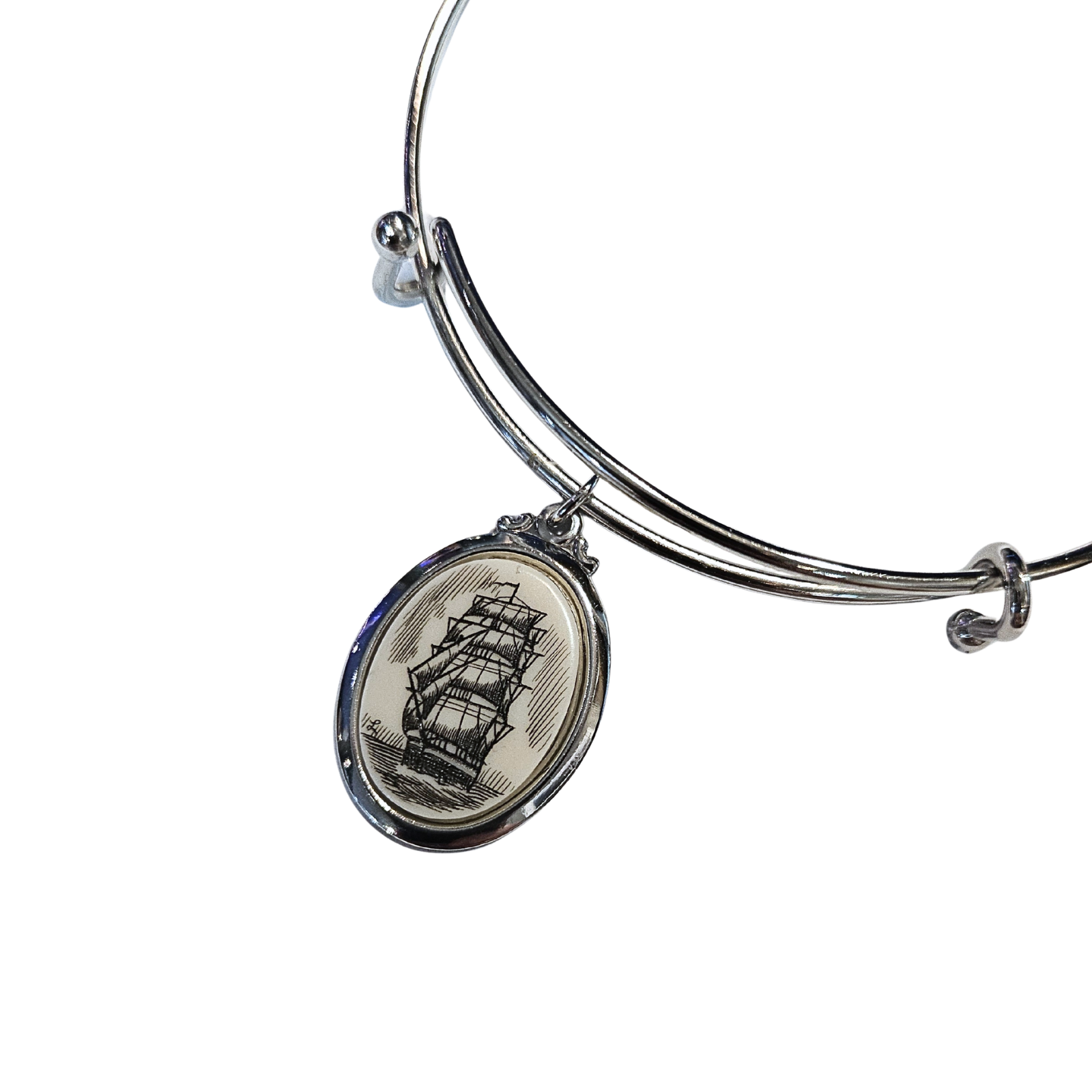 Enjoy these beautiful expandable bracelets with a scrimshaw charm, featuring a nautical design. These bracelets are the perfect gift for loved ones.