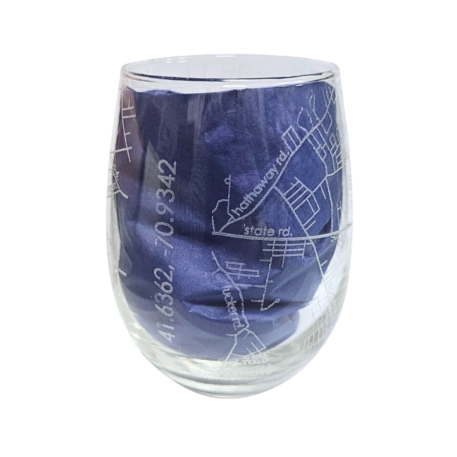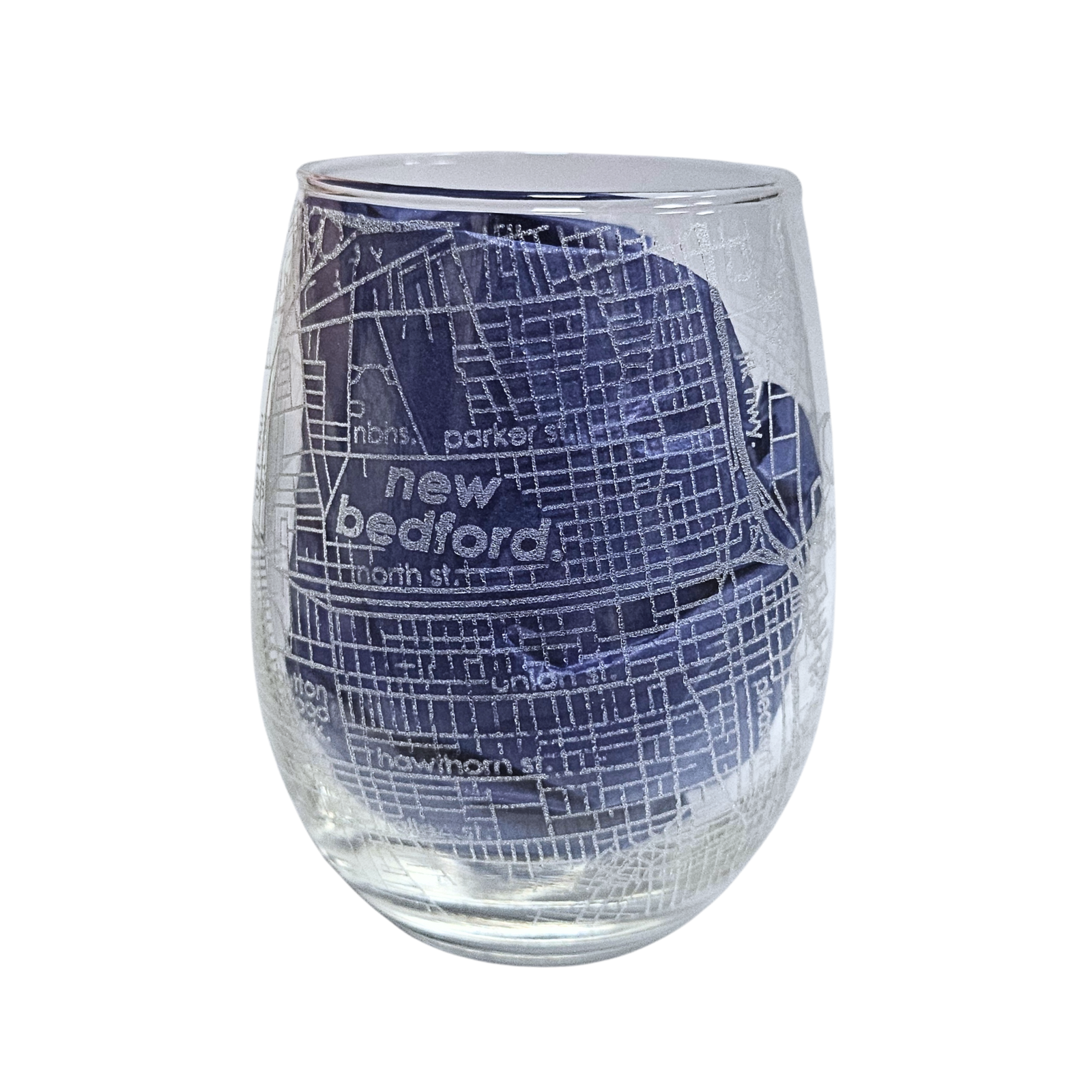 This New Bedford City Map Stemless Wine Glass is a 16 oz glass perfect for everyday use and special occasions alike. Each glass is precision-etched by our skilled engravers with a beautiful map designs of New Bedford in crisp detail and stunning clarity. Each Custom Map Glass comes with the GPS coordinates engraved up the side.