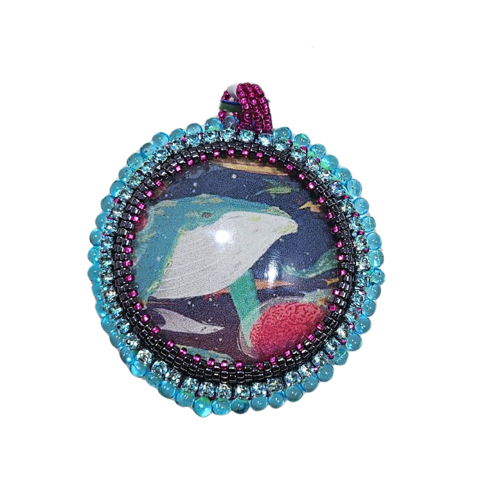 Handcrafted by artist Lynn Hahn, this multifunctional creation makes a beautiful ornament or pendant!