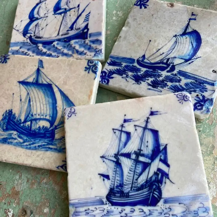 These beautiful stone coasters are made using tumbled marble tile and antique nautical tile images. Made to last a lifetime, these coasters are incredibly durable and good for use with hot and cold beverages. Like tiny works of art, these pieces are useful and beautiful!